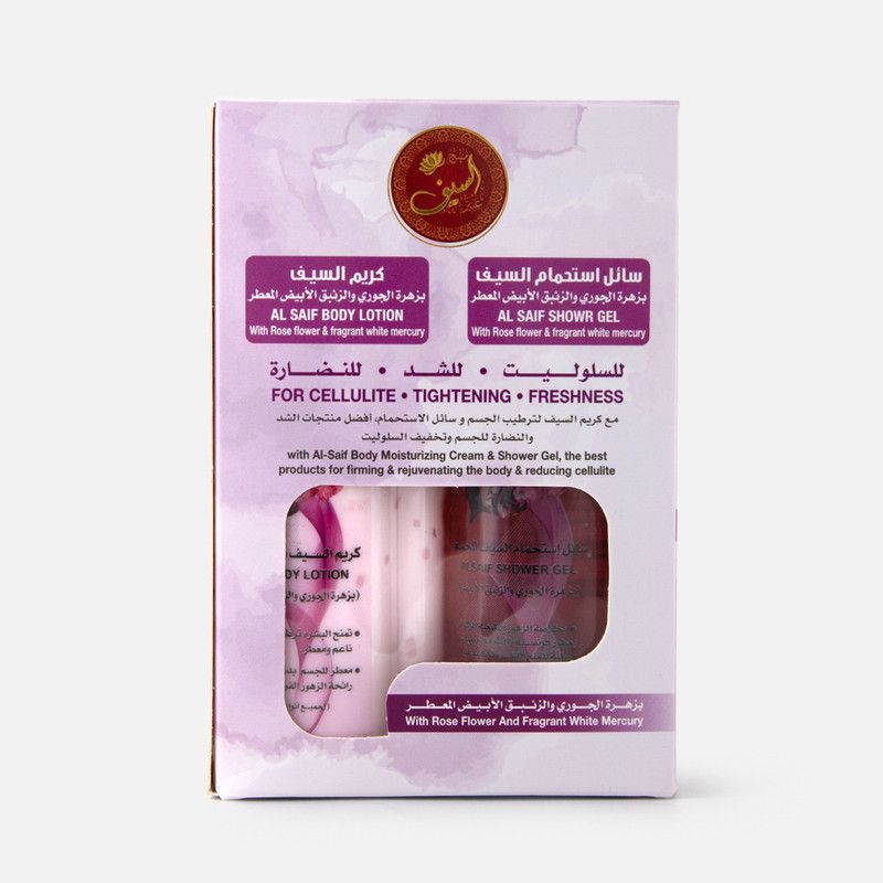 The Al Saif Rose Flower & Fragrant White Mercury Body Lotion & Shower Gel Set features a combination of luxurious body lotion and shower gel that leave the skin feeling smooth, hydrated, and refreshed. The set includes the following key features and benefits: